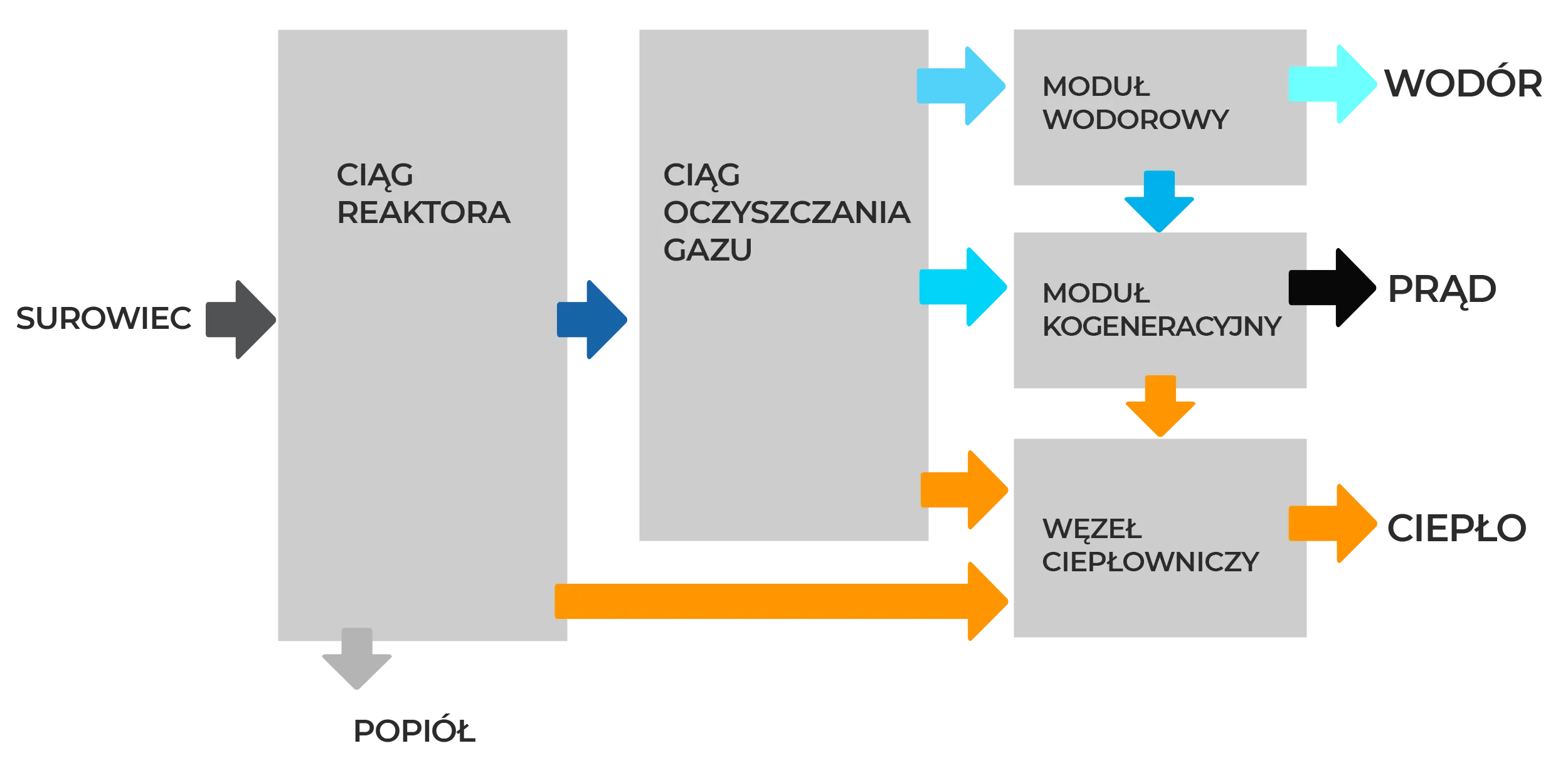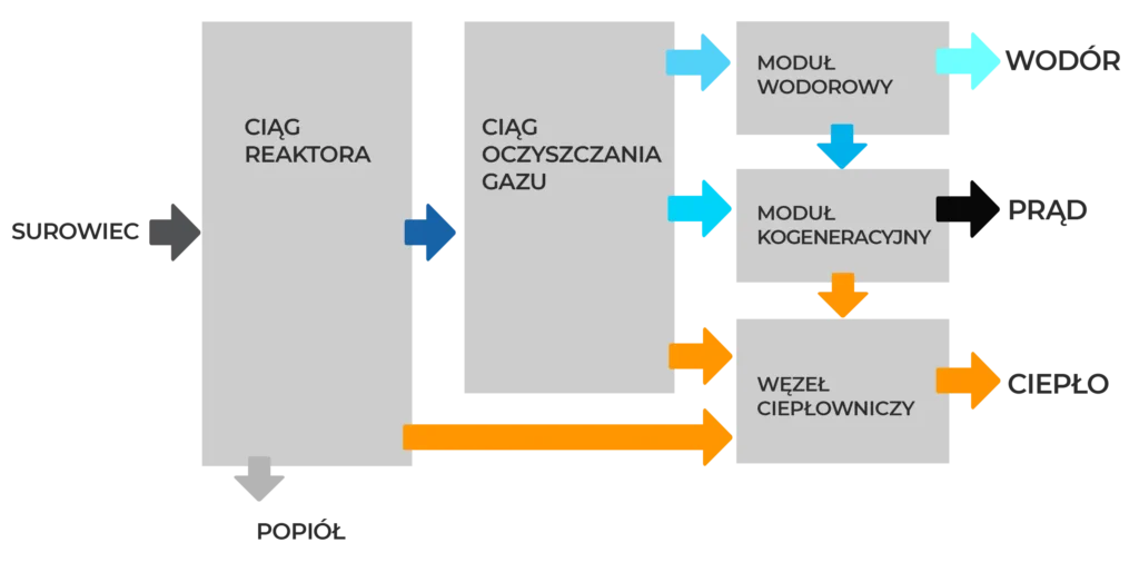 Technologia REHYDRO pozwala przekształcać odpady, RDF oraz biomasę w wysokiej jakości gaz syntezowy. Z niego powstaje energia elektryczna, ciepło oraz wodór wykorzystywany w przemyśle, energetyce lub transporcie.